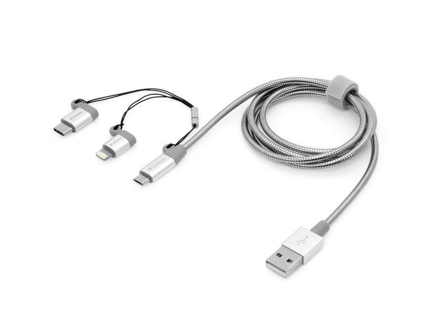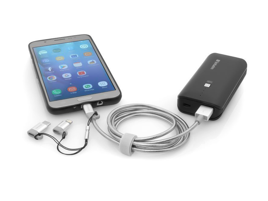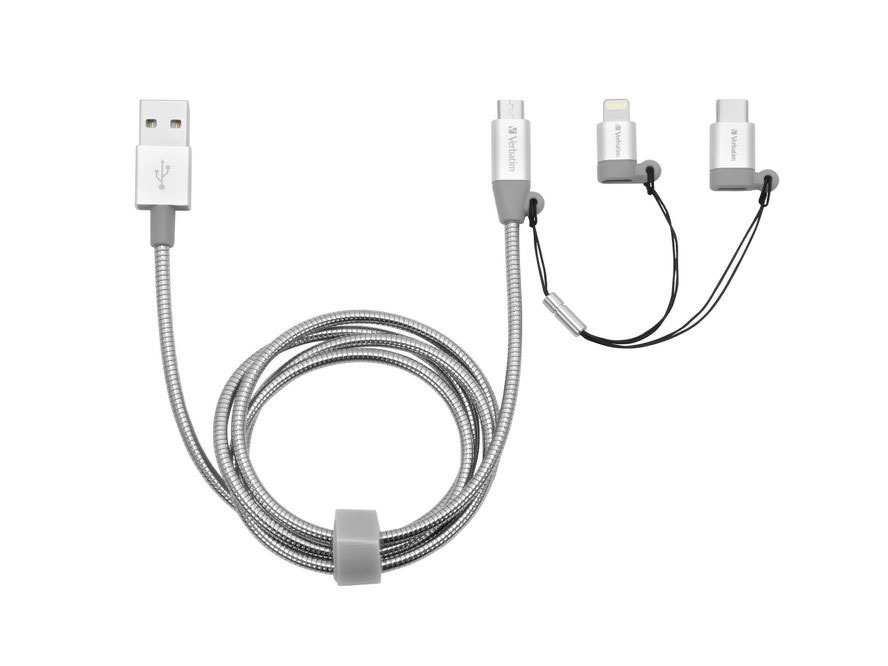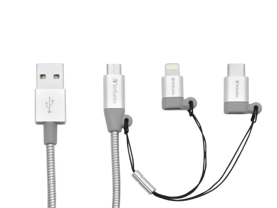 The Verbatim 3-in-1 Sync and Charging Cable has three interchangeable connectors – Lightning, Micro-USB and USB-C. This allows you to charge and transfer data for almost every device. Great gadget while you travel.