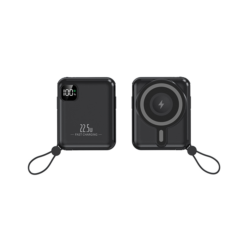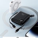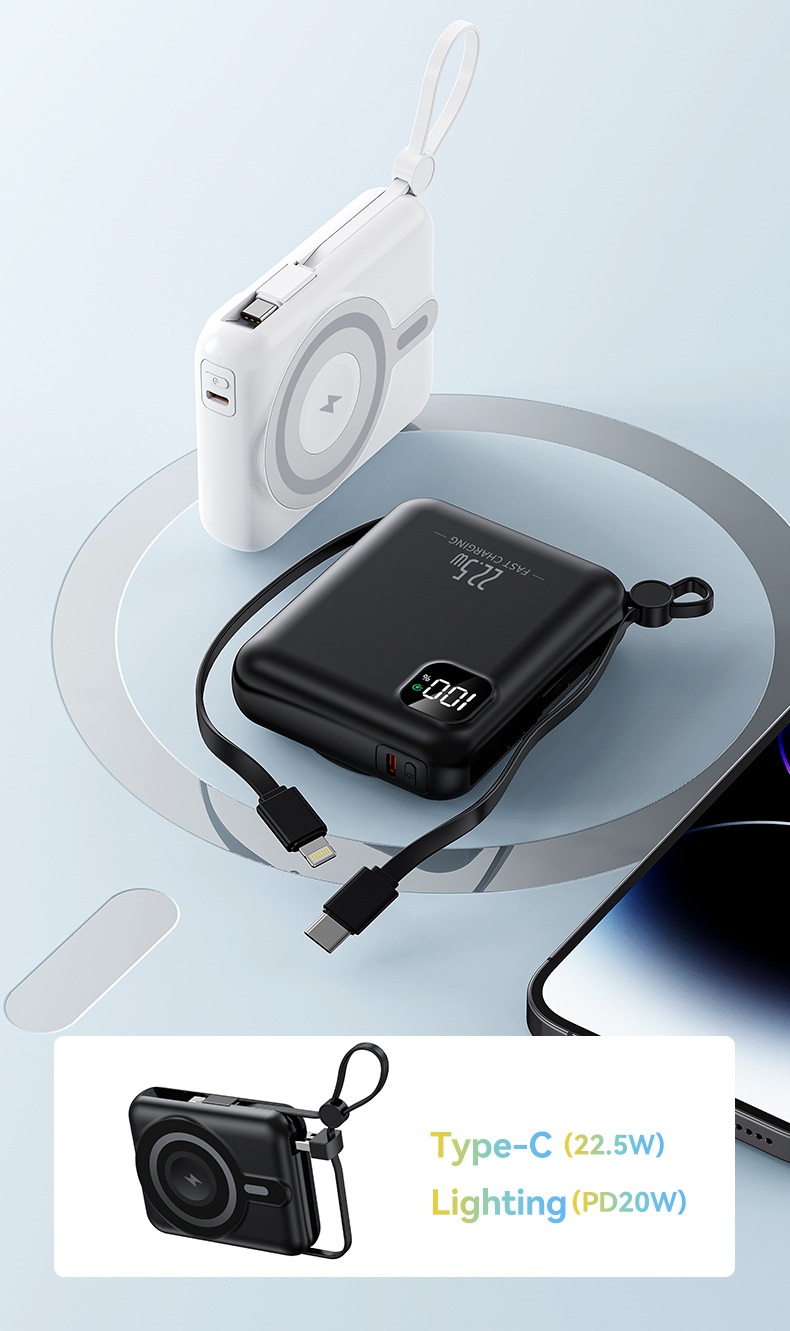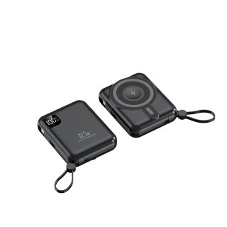 The multifunctional power bank with a capacity of 10,000 mAh offers a combination of wired and wireless charging in a compact design. It supports fast Power Delivery charging up to 20 W and is equipped with detachable USB-C and Lightning cables, so there is no need to carry additional accessories. At the same time, it allows wireless charging of a mobile phone, Apple Watch and AirPods, making it a practical solution for everyday use and travel. The durable body made of ABS material ensures low weight and long durability. Available in four color options: white, black, blue and purple. It is compatible with all phones, thanks to the magnetic ring included in the package.