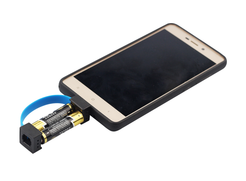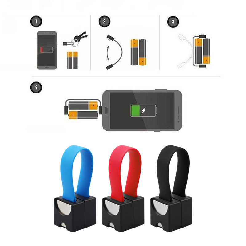 The smallest charger in the world! Just insert 2 pencils and charge the phone. Can be pinned to keys without any problem. Charging connector for Android or iPhone.