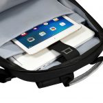 The backpack of the Brooklyn City Backpack holds a 14 to 15.6″ laptop. It also has a separate tablet compartment of 9 to 10 inches. The large zipped front pocket has fur-lined laptop and tablet compartments for better protection. The zip pocket at the top allows easy and secure access to your Smartphone. The waterproof material will provide better protection against bad weather. It also offers a chest strap for better fastening on your back.