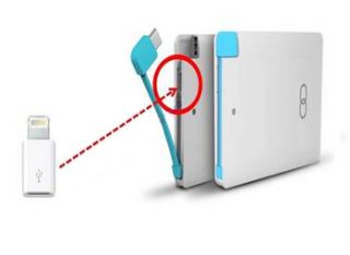 Another of a number of thin power banks is in this ultra-thin credit card format. In addition, it has a built-in cable with a micro USB connector, which does not require additional cables and simply connects it to your device. Its advantage is the size that fits into a wallet. With this type of charger, you can charge a 1-2x mobile phone. The product is perfect for promotional prints.
