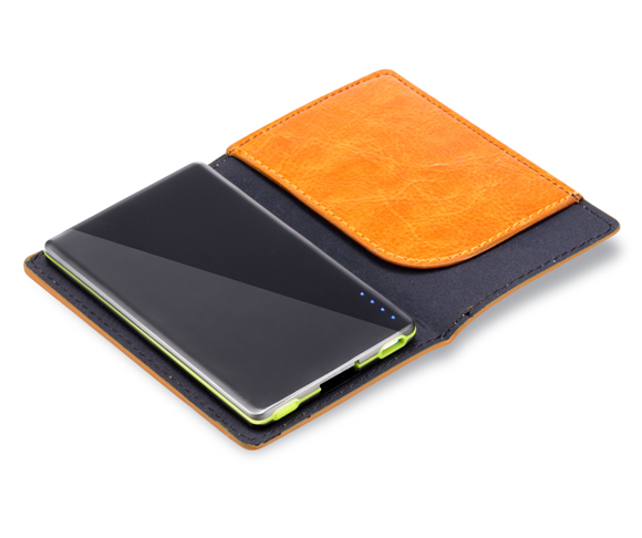 This type of power bank also includes a leather case that can be used as a business card holder. The product is perfect for promotional prints.