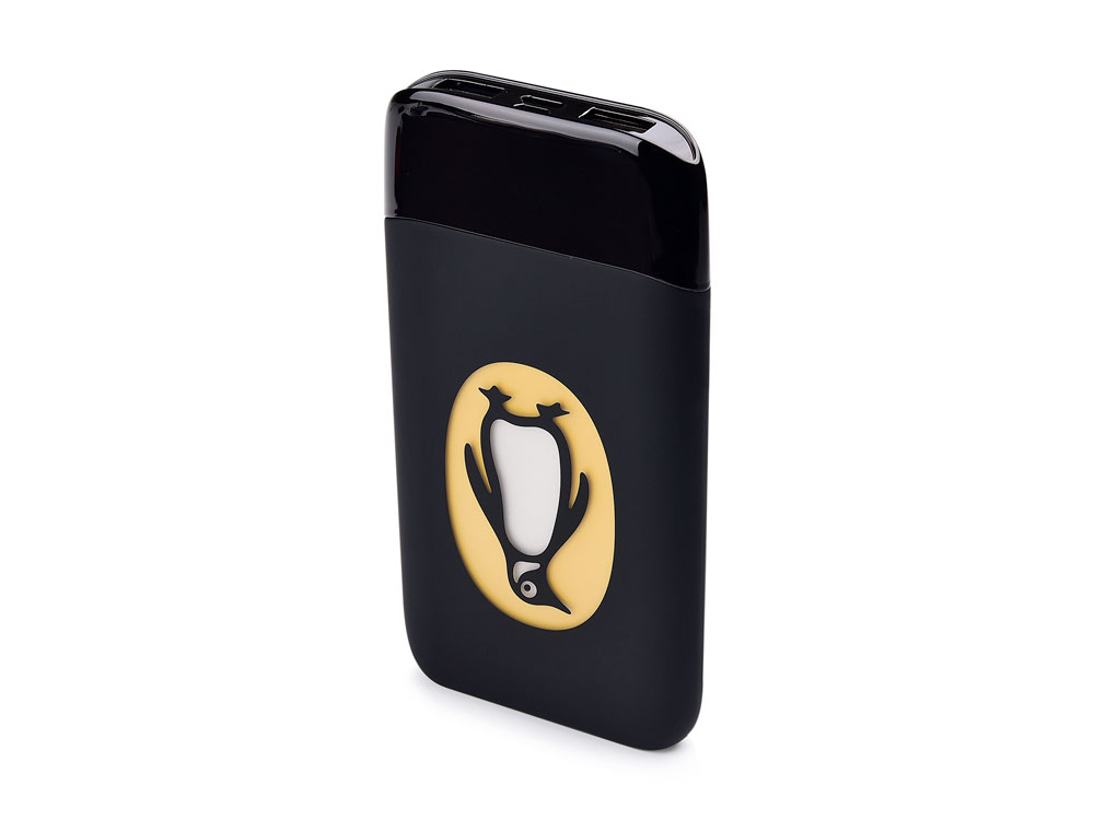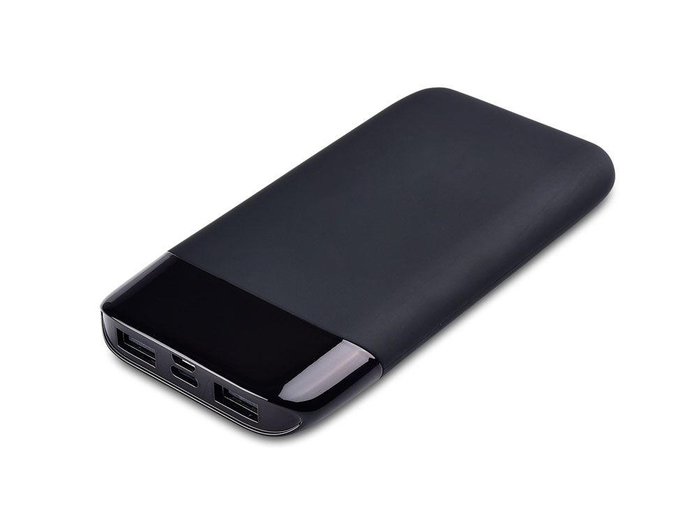 Elegant power bank with the possibility of its own backlit logo. Backlighting of the logo is possible in white or blue. The surface is plastic and silicone, 8000mAh battery capacity. Two USB outputs allow you to charge two devices at once. The Power Bank has two charging inputs: micro-USB and USB-C.