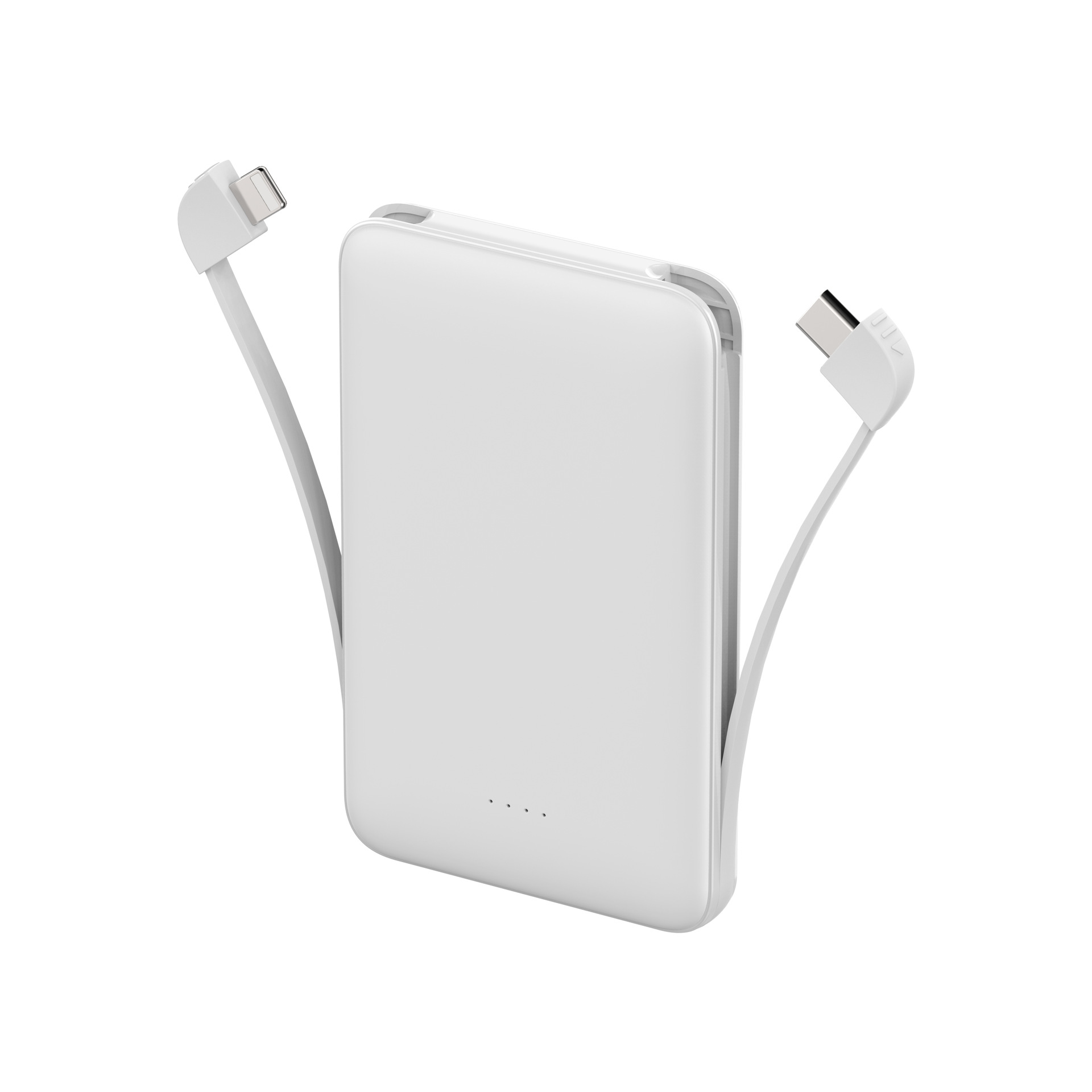 Power Pocket has a capacity of 5000 mAh. Thanks to two built-in outputs – USB Type-C and Lightning – it is the optimal solution for both Android device users and iPhone owners. Both cables offer an output current of 2.1 A, which ensures fast and efficient charging of your devices. The input current is 2 A, which allows for quick charging of the power bank itself. The power bank will surprise you with its low weight and pleasant dimensions, an ideal companion for your pocket.