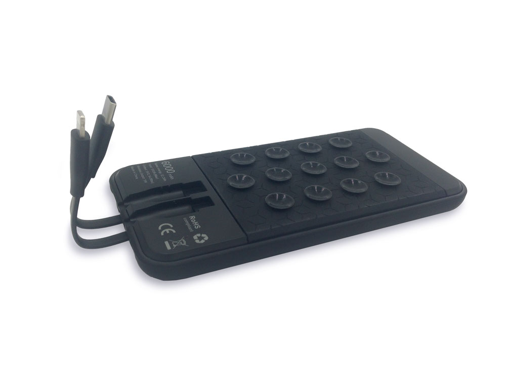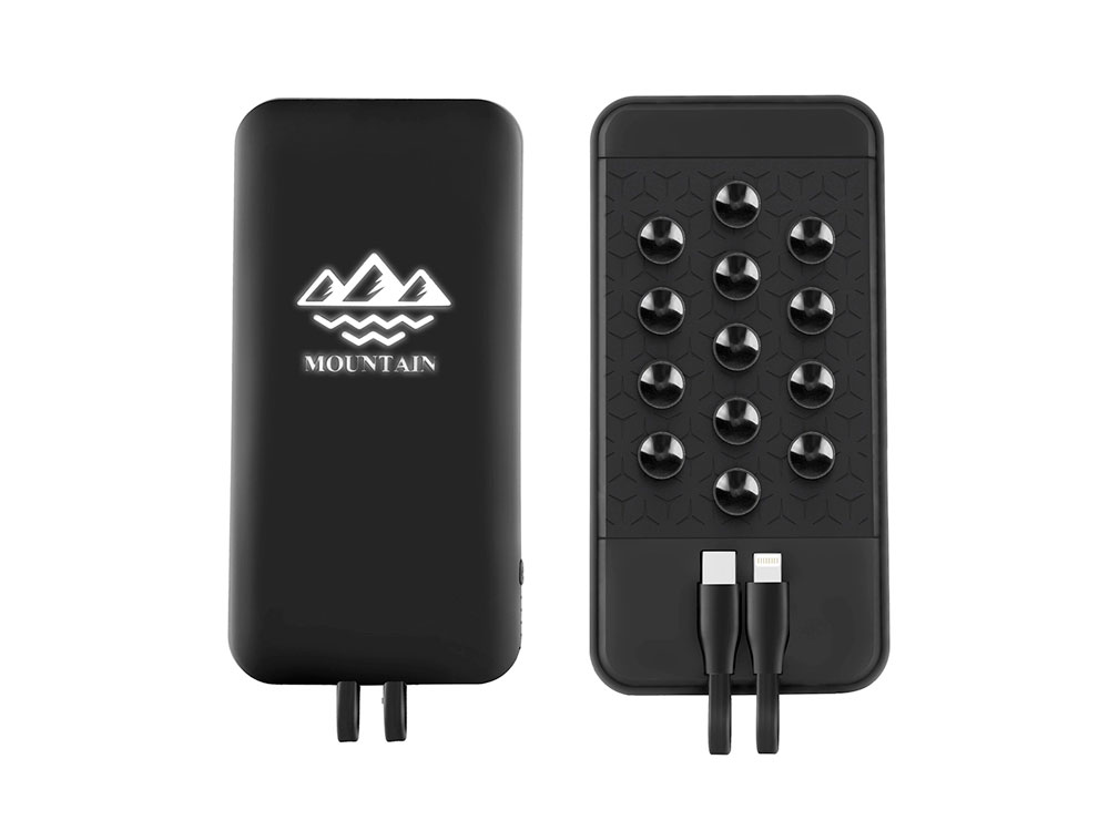 Power Wireless LED Stick is a power bank with wireless charging technology, two integrated charging cables (with connectors USB-C and Lightning) and a capacity of 5000mAh. The power bank also has suction cups for easy attachment to a phone. It has charge status indicators and one USB output for connecting to another cable. It can be provided with an LED backlit logo. Available in black or white.