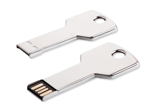 Metal mini USB Flash Drive in the shape of a key suitable for advertising printing.