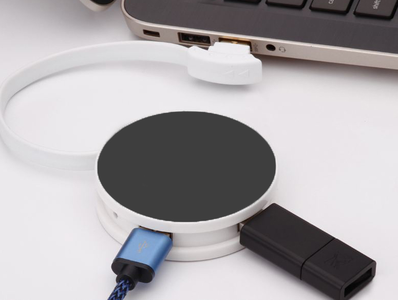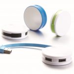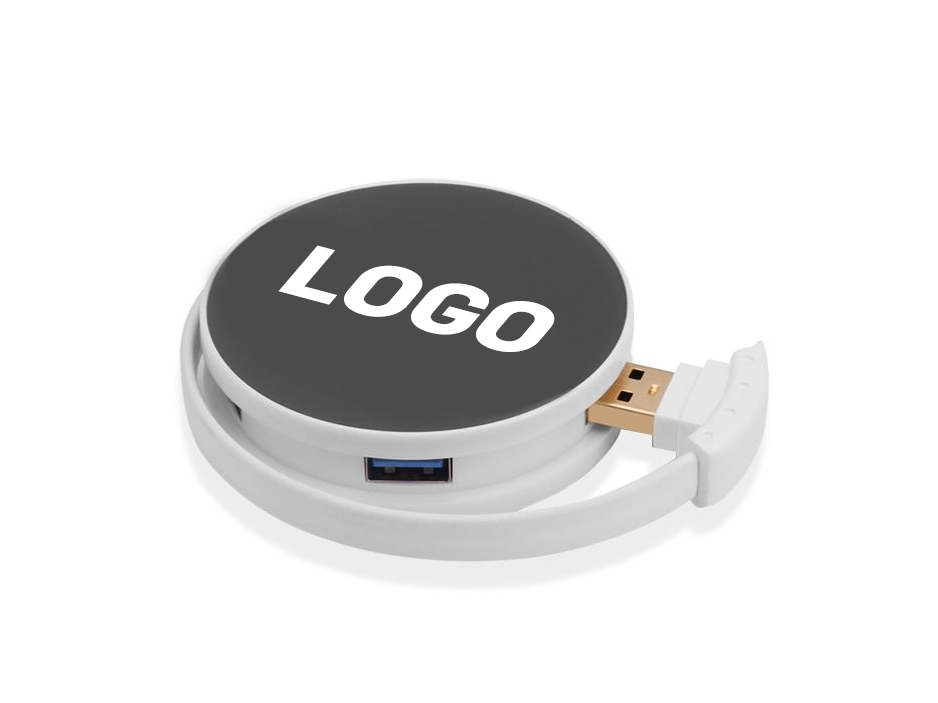 This highly portable and storage USB hub with 4 ports in compact design. Thanks to its small size it is also well-suited and ideal for traveling. The USB Hub gives you plenty of space for your print or corporate logo.