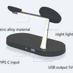 The 5-in-1 universal wireless charger allows you to simultaneously charge your phone, watch, headphones and other devices in an elegant compact design. The charger body is made of a combination of ABS plastic and zinc alloy, which ensures strength, durability and an elegant appearance. It offers power, style and practicality in one — ideal for home and office use. The integrated 2W LED night light creates a pleasant atmosphere during evening use. Available colors: white or black.